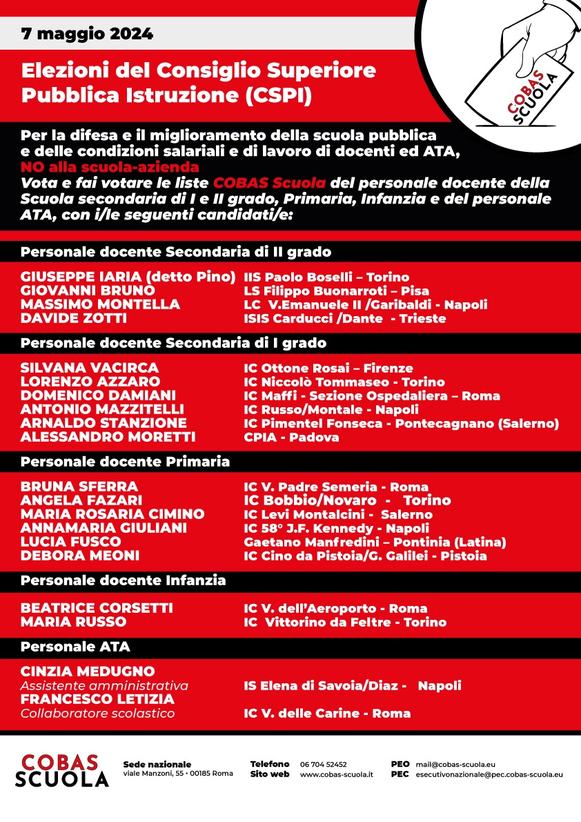 Candidati COBAS SCUOLA Elezioni CSPI 7 maggio 2024.jpg Sintesi Piattaforma Elettorale COBAS SCUOLA elezioni CSPI 7 maggio 2024.jpg