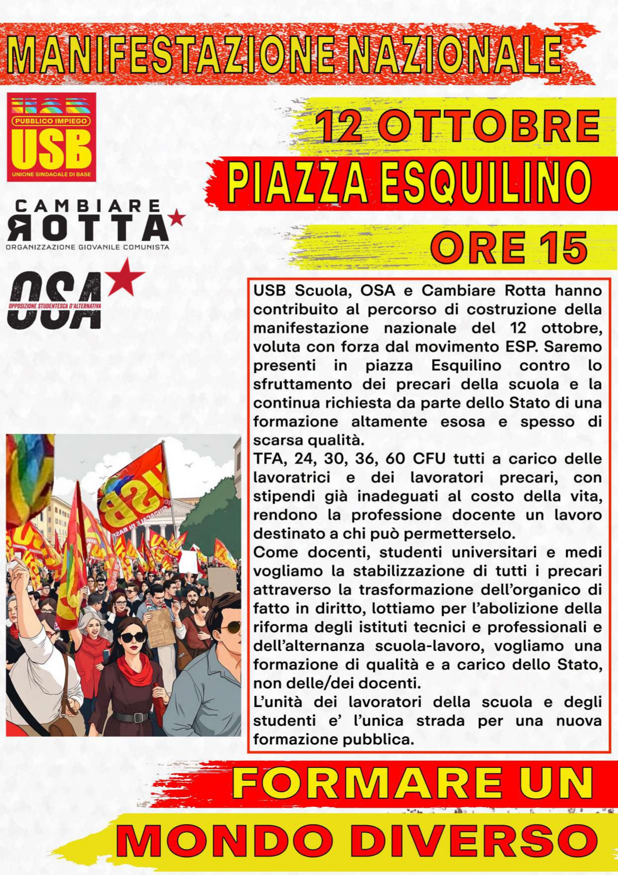 Manifestazione nazionale USB, CAMBIARE ROTTA e OSA 12 ottobre 2024 - piazza Esquilino ore 15