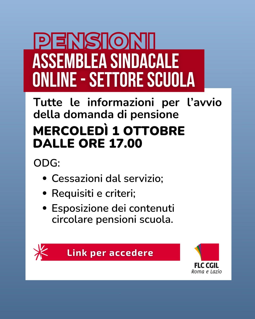 FLC-CGIL - Assemblea Sindacale Online - mercoledì 1 ottobre 2025 – Pensioni 2025: